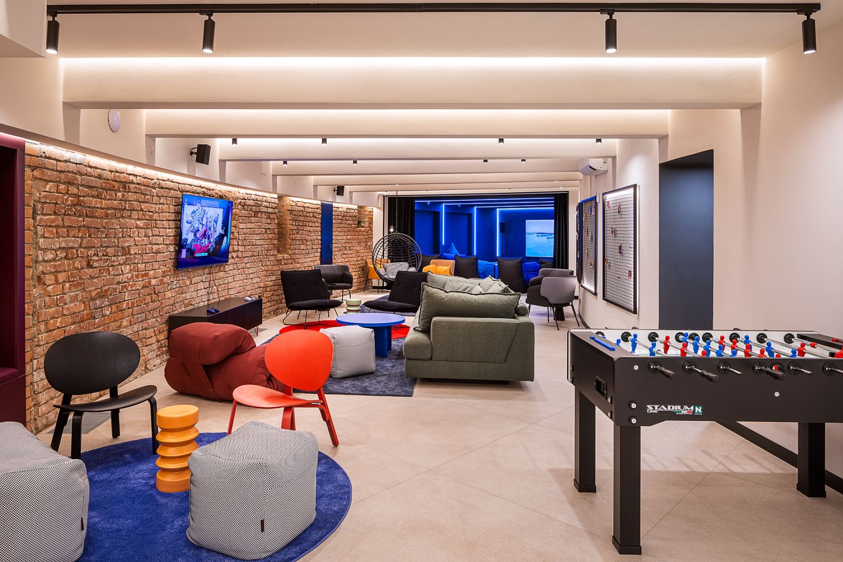 The unit is offered fully furnished. The living room features a sofa bed suitable for everyday sleeping, a desk with a chair, and a wardrobe. The kitchenette is equipped with a sink with a tap, cooktop, extractor hood, refrigerator, microwave, as well as details such as a waste bin. The entrance hall includes a coat rack and a mirror. The windows are fitted with curtains and day-and-night blinds, and heating is provided by a central gas boiler system. Residents have access to shared coliving spaces in the basement, including a common room and kitchen for hosting events and gatherings, a podcast studio, sauna, and fitness area. These facilities are currently fully operational; their future use and management will depend on a joint decision of the unit owners.