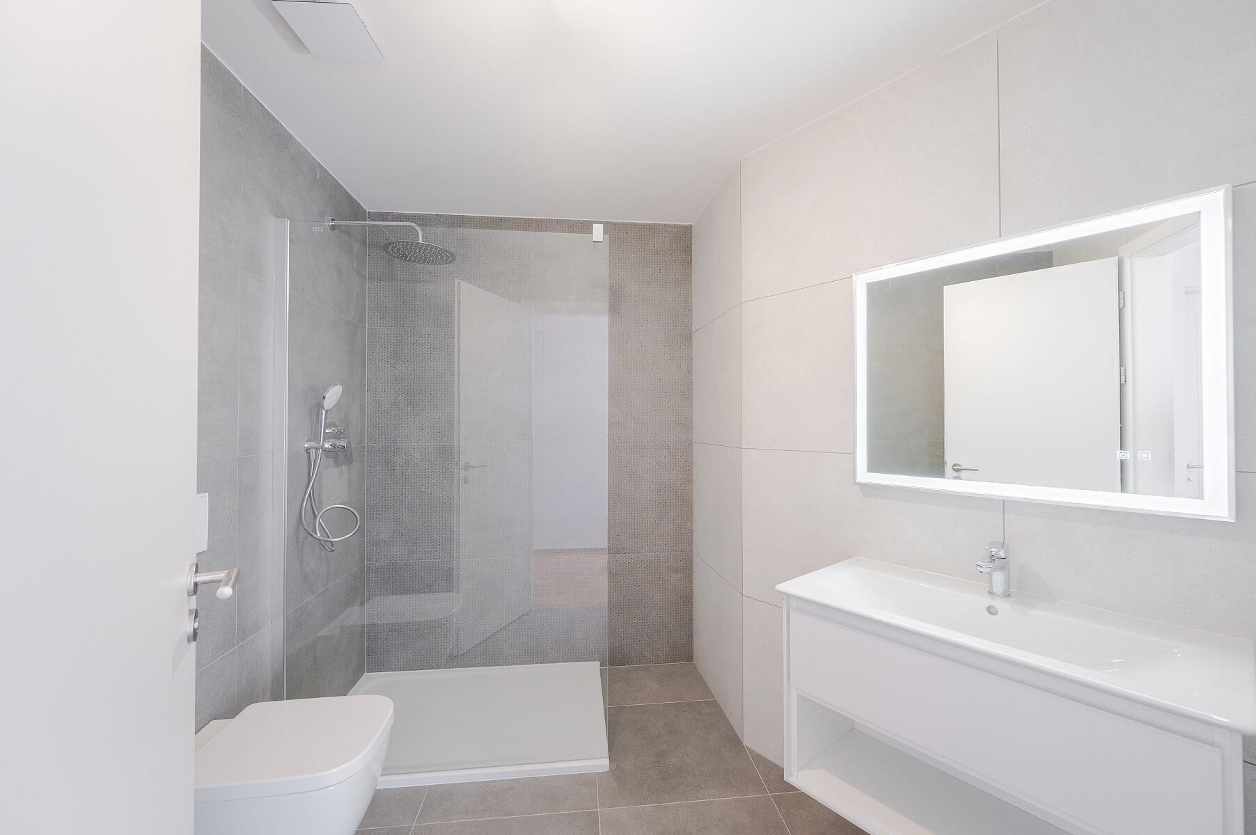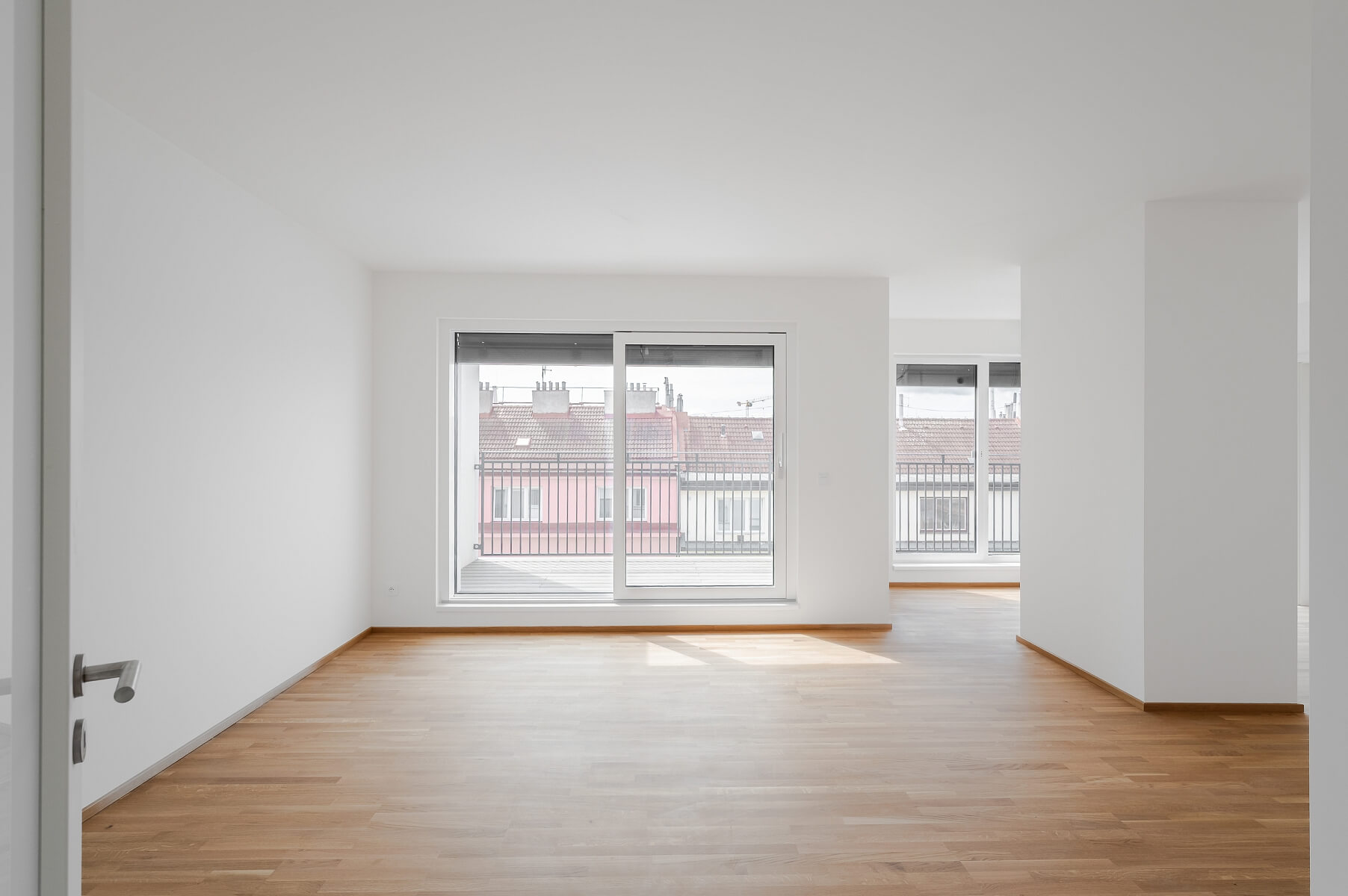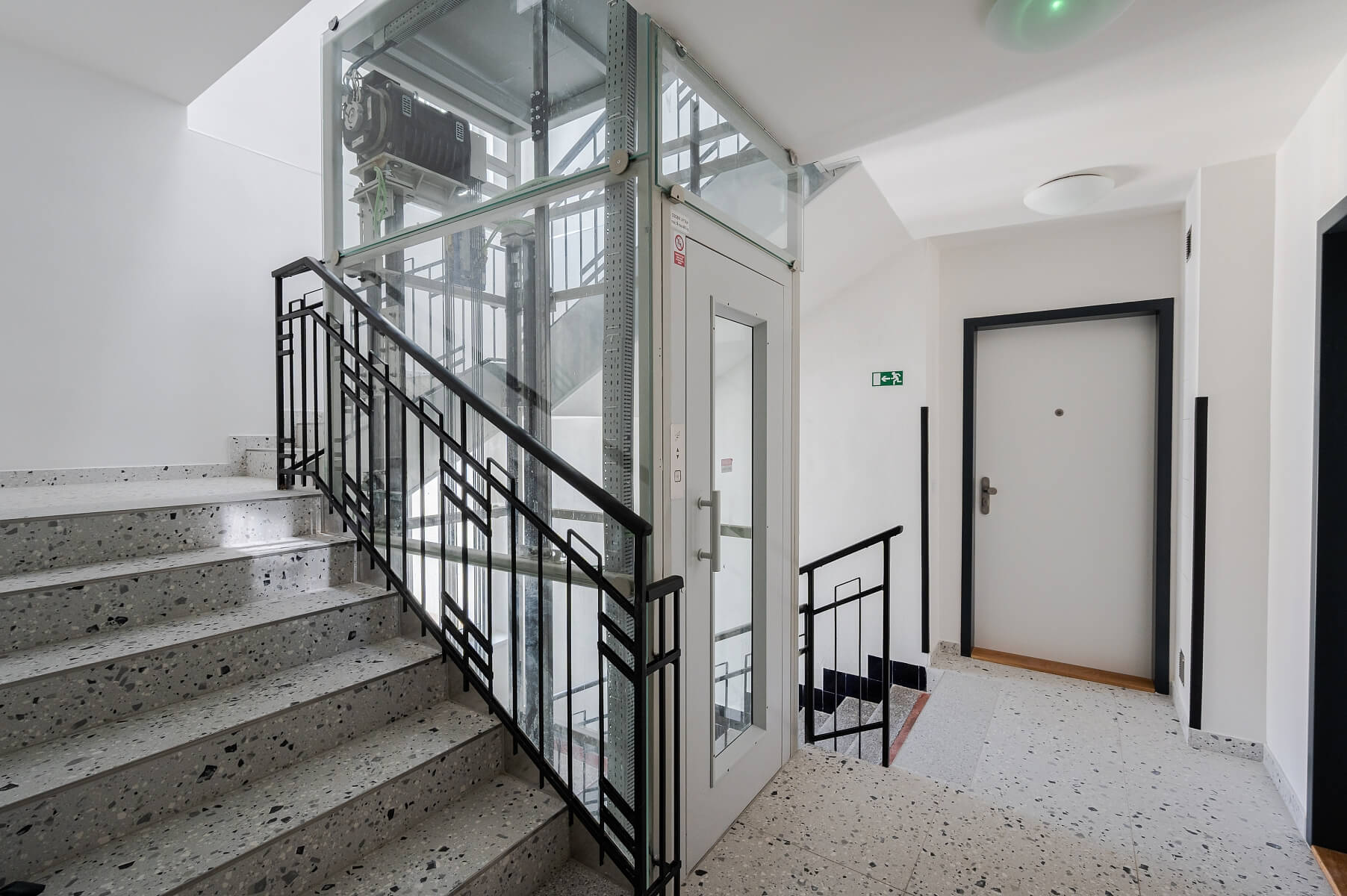 The approval inspection is scheduled for August 2025, and the apartment will be handed over in a completed state with a high standard of finish, which include three-layered oak floors by Boen, large-format tiles in bathrooms by La Futura, premium sanitary ware from Ideal Standard, Kaldewei, and Hüppe brands, entrance and interior doors by Sapeli, underfloor heating and air conditioning. Heating is provided by De Dietrich gas condensing boiler. A significant added value comes from large format windows with anthracite plastic-aluminum frames and external blinds. The building will have a new facade, renovated common areas, and an elevator serving the floors.
