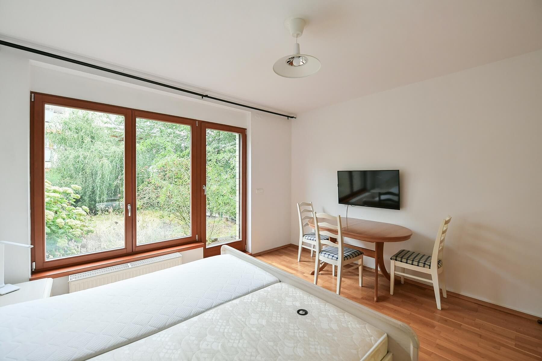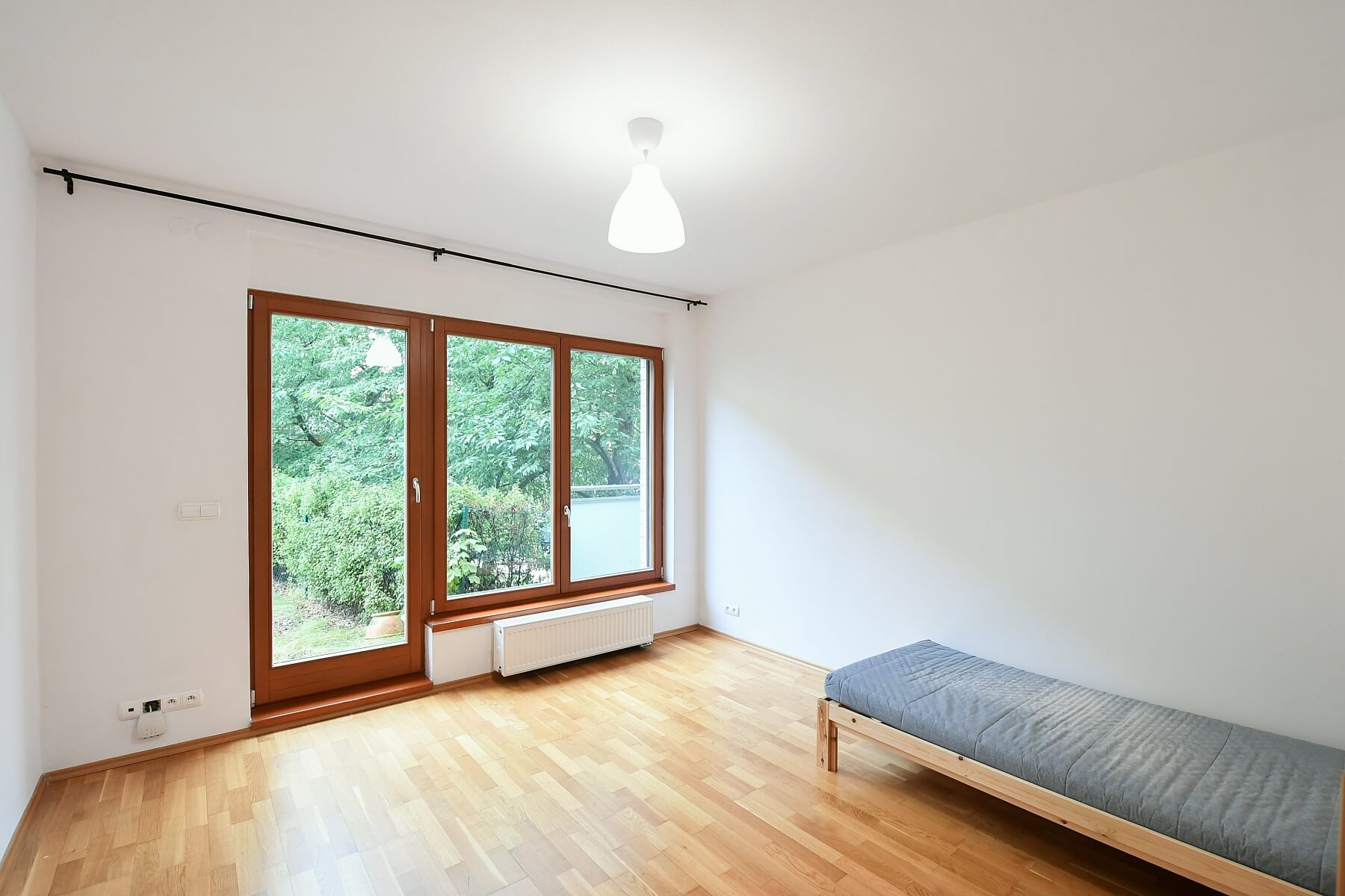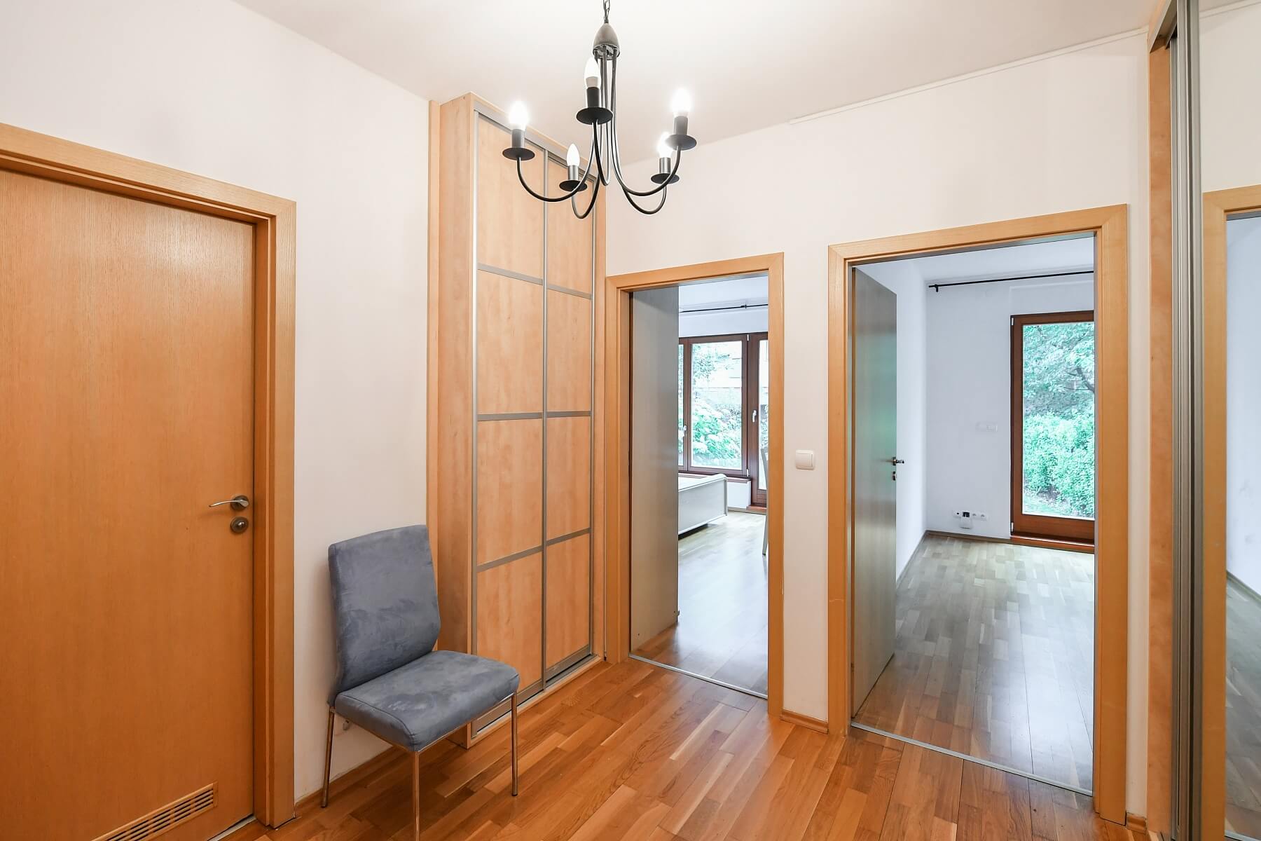 The residential project was completed in 2005. Facilities include wooden floating floors and tiles, Laufen designer sanitary ware, insulated wooden double-glazed Euro windows, german-made aluminum roller shutters with remote control on the doors and windows towards the terrace and garden, central heating with the possibility of individual regulation, a chimney for a fireplace, thermostat in each room, security doors, a videophone, a fully fitted quality brand-name kitchen (including a dishwasher), and a safe. The apartment comes with 1 garage space and a cellar storage unit; residents can use the bike room. The common areas of the building are nicely maintained.