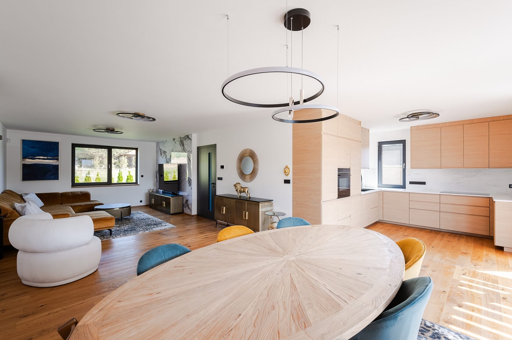 This high-quality, air-conditioned family house with a bright, airy interior, a bioclimatic pergola, a hot tub, a garage, and an automatically irrigated garden is situated on a corner plot in a quiet, dead-end street lined with well-maintained mature greenery in the village of Nový Vestec, on the outskirts of Stará Boleslav. The newly developed villa neighborhood extends right on the edge of a forest park at the confluence of the Jizera and Elbe rivers, just a few minutes’ drive from Černý Most.