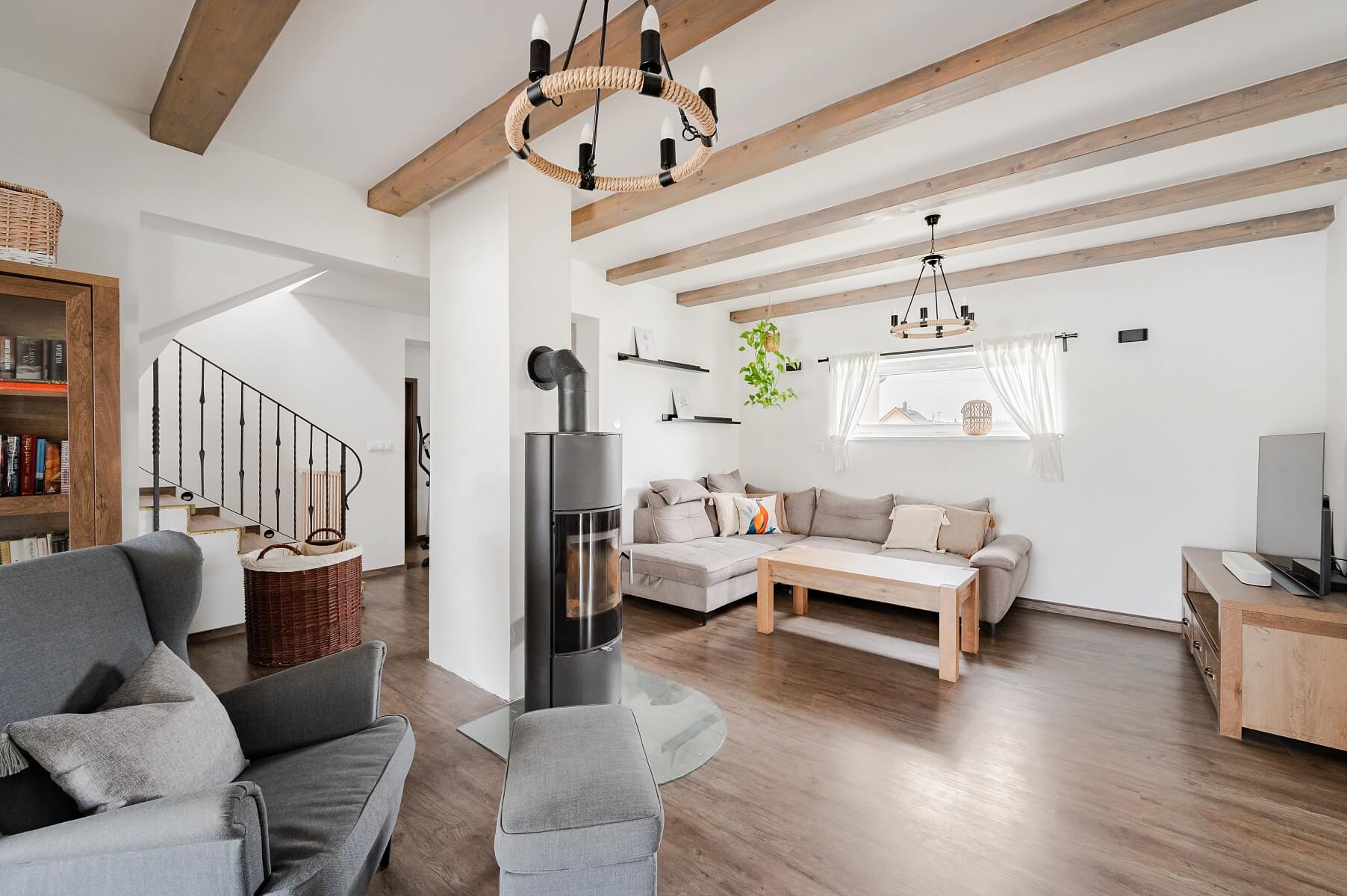 This energy-efficient four-bedroom house, located at the end of a cul-de-sac in the village of Trubín in the Beroun region, offers not only extensive countryside views but also exceptional privacy and tranquility. A nearby access point to the D5 highway provides quick connections to Prague, Plzeň, and Hořovice.