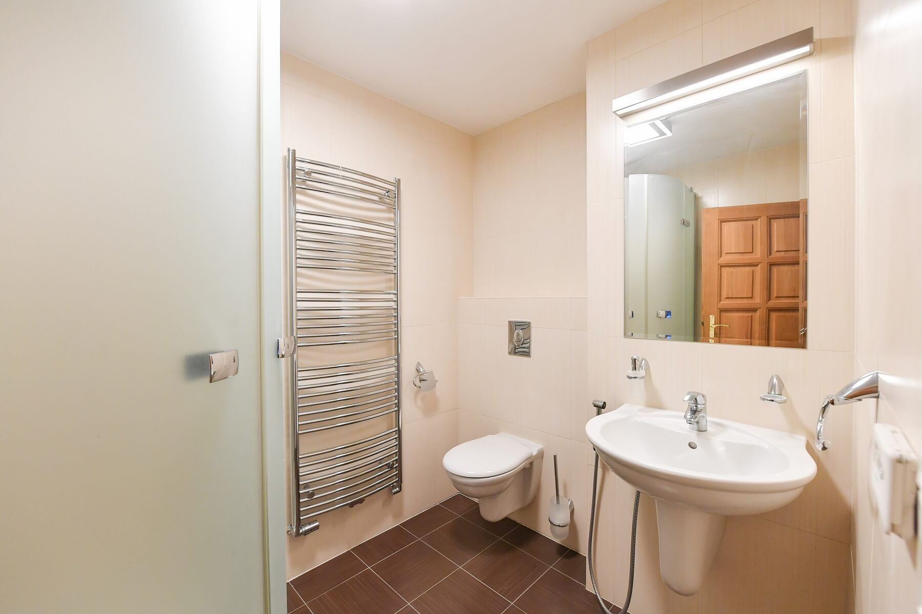 The building was constructed as a timber structure with a traditional shingle roof and wooden triple-glazed windows. Wooden floors combined with Italian tiles in the bathrooms and oak interior doors highlight the use of high-quality materials. Heating is provided by a combination of electric underfloor heating and radiators with thermostats in each room, controllable via an app. The annual operating costs of the house are 38,000 CZK. The unit is secured by an electronic alarm and CCTV system, also remotely controllable.