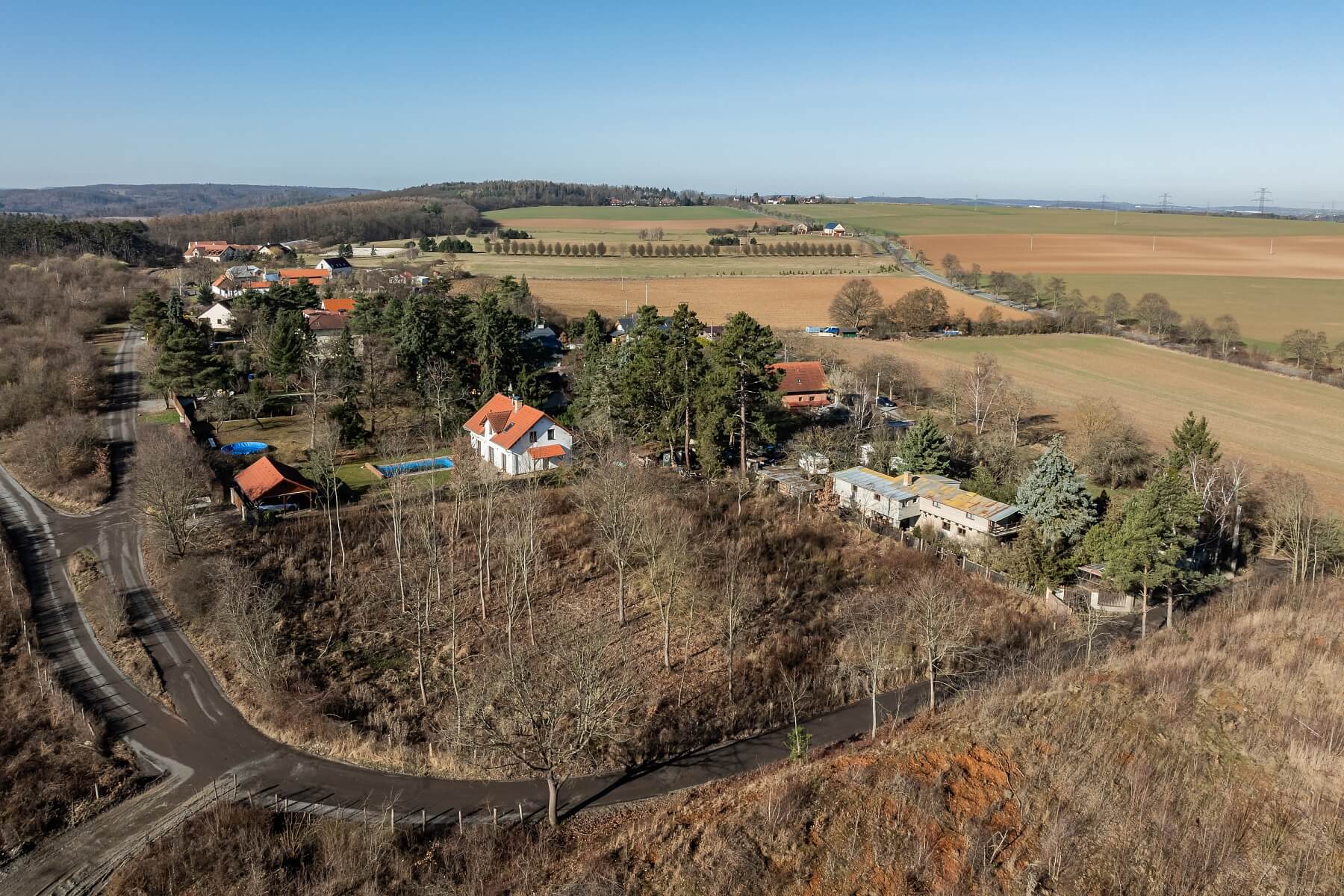 The location lies within the Český kras Protected Landscape Area (CHKO) and is situated in close proximity to the Staňkovka Nature Reserve. A hiking trail runs near the property. Full civic amenities are available within a short driving distance in Černošice or Radotín. A suburban bus provides a connection to the train station within 10 minutes, from where there are direct and fast train services to the Prague Main Railway Station (Hlavní nádraží).